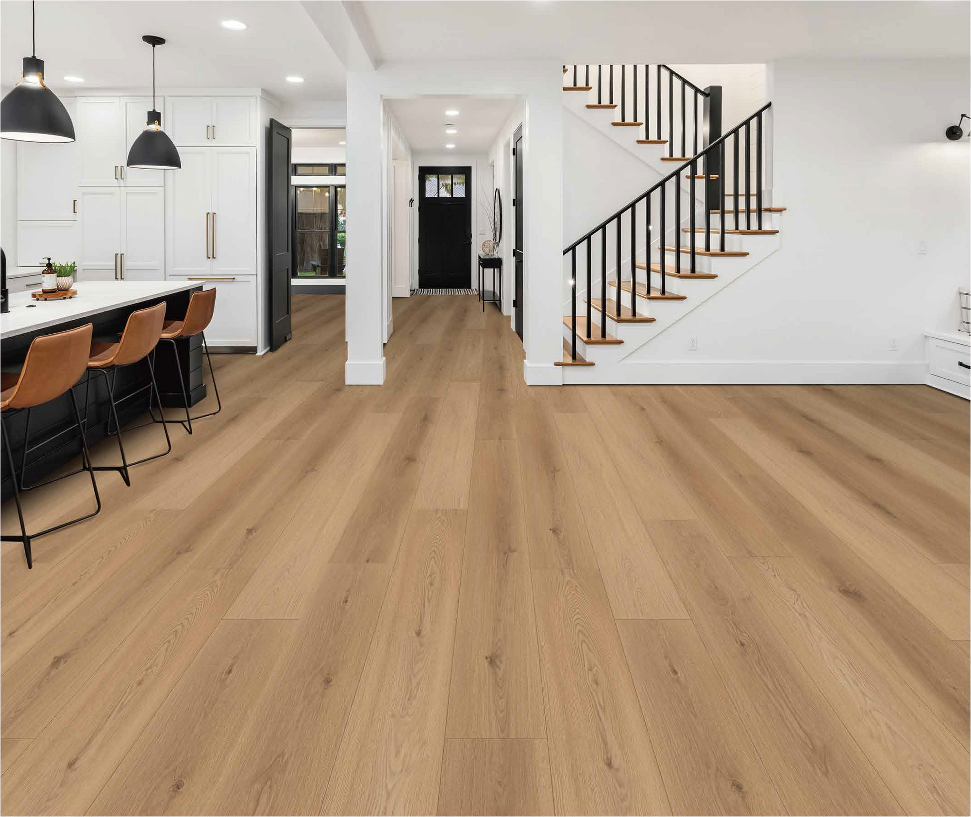 Warm desert tones with waterproof stone composite floors for a cozy, inviting home