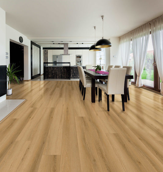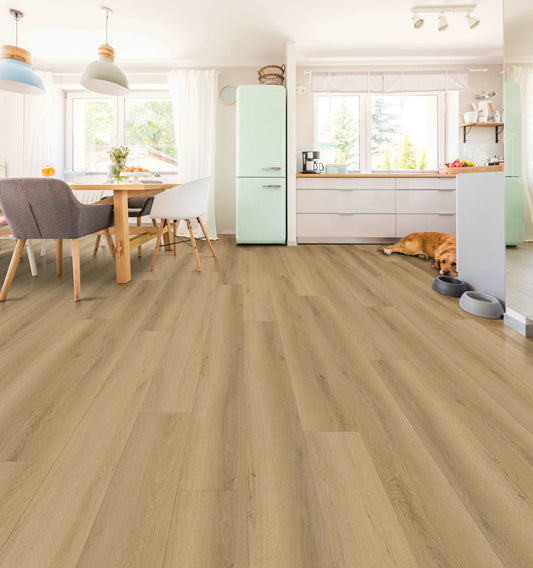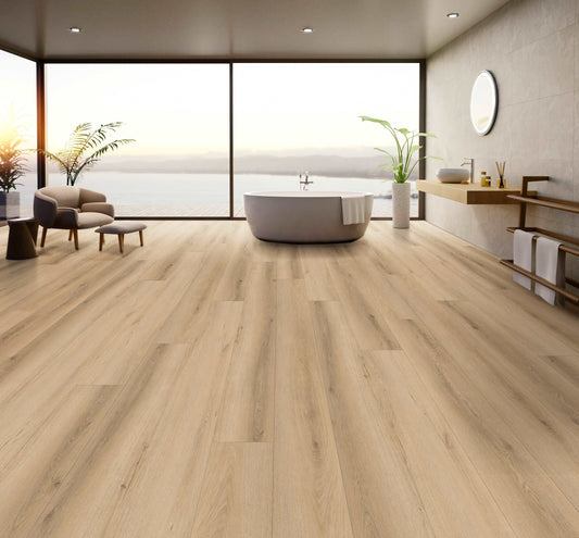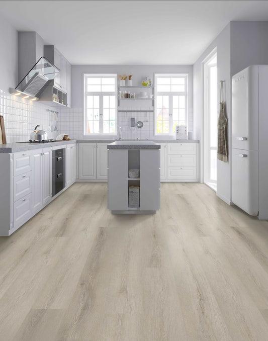 The La Rochelle flooring in the Balena Collection of Stone Composite Flooring captures the coastal charm and elegance of white oak wood floors found in historic Parisian mansions. Each plank is meticulously scanned and selected to reflect the unique character and enduring beauty of these exquisite floors. The La Rochelle design features a carefully crafted surface texture and a lustrous finish that mirrors the original floors' pristine condition. Inspired by the picturesque port city of La Rochelle, this flooring showcases soft, airy tones that evoke the serene seaside ambiance and architectural grace of the region. Bringing a touch of coastal sophistication and timeless appeal to any space, the La Rochelle flooring offers a perfect blend of tradition and modern elegance, honoring the tranquil beauty of its namesake city. MSRP $4.99 per square foot *pending exact quote based upon quantity and location of your delivery address. Click request quote to get your exact pricing on product and shipping.
